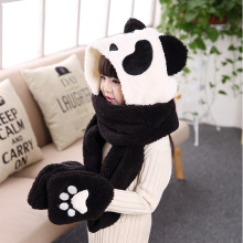2016秋冬季儿童多功能帽子手套围巾三合一套装男女童小孩熊猫卡通