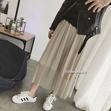 超美~2017新款银丝网纱裙半身裙大摆蓬蓬裙中长百褶裙纱裙显瘦