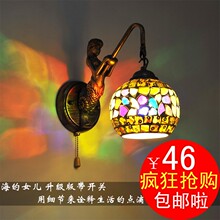 欧式田园地中海卧室吧台过道马赛克床头灯美人鱼背景墙壁灯镜前灯