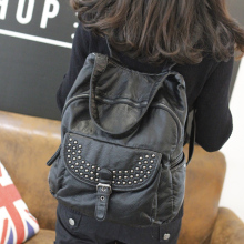 2016新款韩版水洗皮背包学院风书包真皮休闲时尚个性柳钉双肩包女