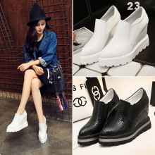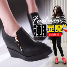 春秋新款内增高女鞋子高跟鞋坡跟厚底松糕尖头单鞋低帮鞋尖头女鞋