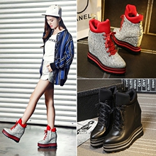 秋冬新款亮片坡跟短靴子女超高跟尖头马丁靴潮厚底松糕鞋女靴裸靴