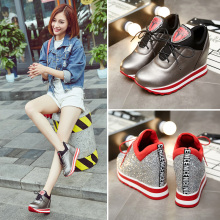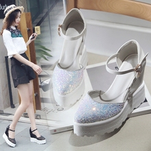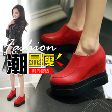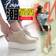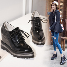 韩版春秋新款坡跟女鞋子松糕跟厚底超高跟内增高圆头系带单鞋女鞋