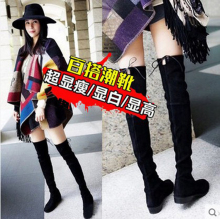 秋冬季真皮平底过膝靴长靴子瘦腿弹力高筒女靴平跟长筒靴女鞋