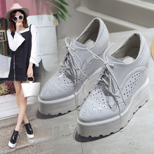 春夏季新款镂空坡跟单鞋女尖头超高跟厚底松糕鞋系带休闲鞋女鞋子