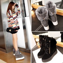 秋冬新款真皮厚底内增高女棉鞋保暖雪地靴短靴系带坡跟短筒女靴子