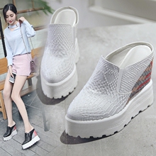 春秋新款坡跟女鞋子松糕厚底防水台超高跟单鞋圆头低帮鞋女鞋潮