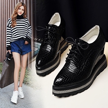 春秋新款尖头厚底坡跟单鞋女高跟防水台系带休闲鞋松糕鞋女鞋子