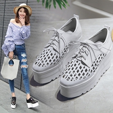 春夏季新款镂空厚底松糕鞋女方头透气坡跟单鞋防水台系带休闲女鞋
