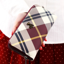 2016新款女士长款欧美英伦格子学生钱包手拿包PU皮钱夹复古学院风