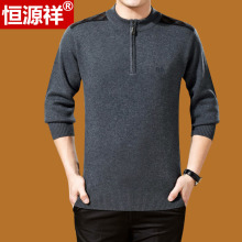 恒源祥羊毛衫男宽松中年半高领拉链毛衣商务纯羊毛爸爸加厚针织衫