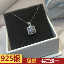 爆款s925纯银韩国韩版时尚女夏锆石吊坠短款锁骨方钻项链生日礼物