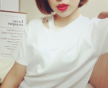 2017新款春镂空环扣复古短袖春装宽松纯色棉纶T恤女半袖打底上衣