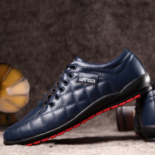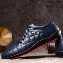 旺迪男鞋春季透气皮鞋男士休闲鞋英伦真皮圆头青年韩版系带板鞋子
