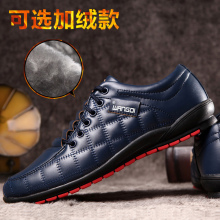 男鞋秋季潮鞋新款青年板鞋男款圆头中年皮鞋男士百搭英伦休闲鞋子