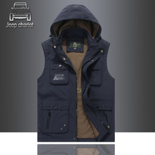 2016春夏吉普多口袋马甲 男士宽松休闲透气连帽轻薄网眼大码马夹
