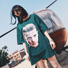 许七七正品 2017新款百搭人头印花中长款T恤女宽松短袖打底上衣