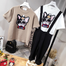 2017春夏秋新款韩国东大门字母沙皮狗宽松BF磨毛加厚短袖T恤大码