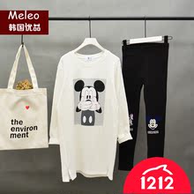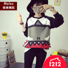 201春秋韩国东大门卡通中长款T恤宽松显瘦磨毛加厚女打底衫大码