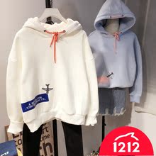 2016秋冬款韩国ulzzang甜美飞机连帽女加绒卫衣宽松BF风女外套潮