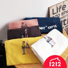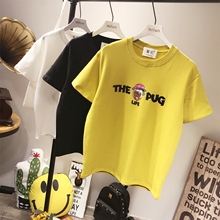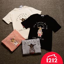 2016秋冬新款韩国字母卡通狗短袖T恤加厚磨毛宽松BF短袖T恤女大码