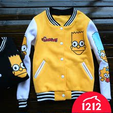 2016秋冬款卡通辛普森加绒开衫原宿风外套棒球服衫卫衣女装BF风