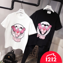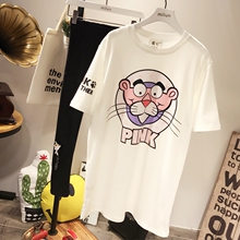 2017春秋夏韩国东大门粉红豹宽松磨毛绒加厚女短袖T恤打底衫大码