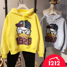 2016秋冬韩国ulzzang唐老鸭加绒卫衣日系原宿宽松BF卡通卫衣短款