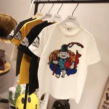 2017春夏欧洲站中国复古风刺绣福神磨毛加厚T恤宽松BFT恤打底大码