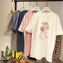 2017春夏新款韩国东大门粉红豹中长款磨毛厚T恤宽松连衣裙大码女