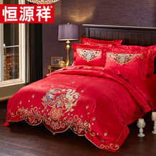 恒源祥 婚庆四件套大红纯棉结婚全棉刺绣床单被套六件套床上用品