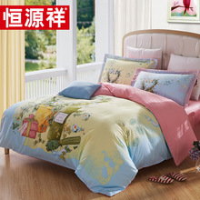 恒源祥全棉斜纹印花四件套100纯棉床上四件套床单被套1.5m1.8床
