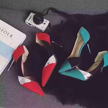 2017韩版新款中跟5cm细跟浅口单鞋女春简约时尚绒面凉鞋女夏高跟
