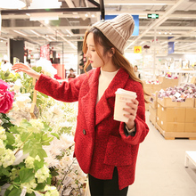 2016冬装新款韩版茧型宽松斗篷红色羊毛呢外套女呢子大衣加厚短款