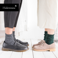 日系潮流秋冬新款民族风中筒情侣袜纯棉男女袜复古粗线长筒堆堆袜
