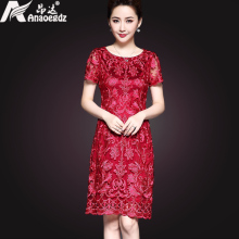 夏季中老年女蕾丝连衣裙夏天短袖中年妈妈装大码婚礼裙子40-50岁