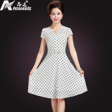 夏天中年妈妈装碎花雪纺连衣裙2017夏季中老年女装修身大摆裙子夏