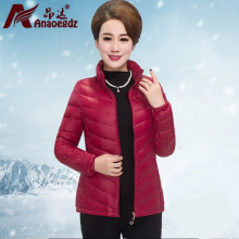 冬季轻便薄款大码女装中老年轻薄羽绒服女短款中年妈妈外套冬装