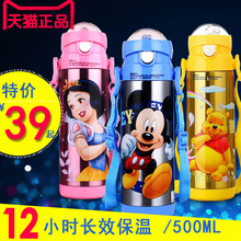 迪士尼正品儿童保温杯吸管杯两用防漏小学生宝宝大容量背带500ml