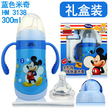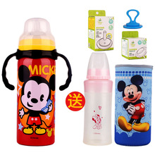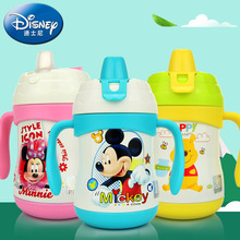 迪士尼正品两用儿童宝宝吸管杯大容量不锈钢保温奶瓶带手柄300ML