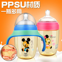 迪士尼婴儿童ppsu宽口径奶瓶新生儿宝宝防胀气防摔带把塑料奶瓶