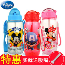 迪士尼儿童吸管杯防漏喝水杯幼儿宝宝饮水杯子背带手提带绳学饮杯
