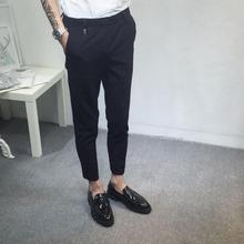 春装西裤纯色弹力小脚裤修身显瘦九分裤休闲裤男装9分西裤 不粘毛