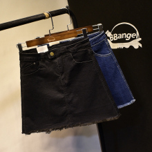 韩国气质百搭牛仔短裙女显瘦修身包臀裙 不规则拼接毛边半身裙潮