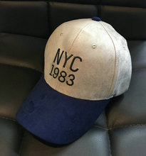 韩版鹿皮绒nyc 1983拼色灰色韩国潮帽弯沿鸭舌帽子男女棒球帽