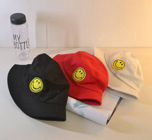 ulzzang 韩国软萌原宿复古春夏遮阳刺绣黄色笑脸平顶盆帽子渔夫帽