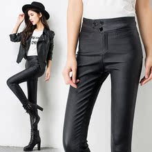2016秋冬款亚光磨砂皮裤女外穿加绒高腰显瘦紧身打底裤pu仿皮裤