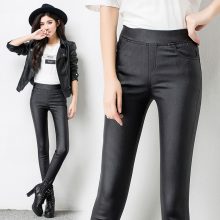 冬季亚光仿皮裤加绒女外穿 高腰 显瘦PU皮磨砂紧身打底裤