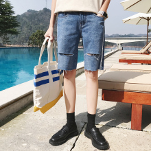 夏季新款韩国ulzzang原宿bf风GD权志龙同款男士破洞牛仔短裤5分裤