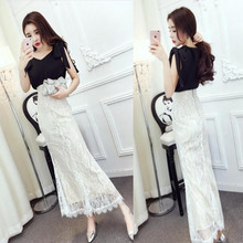 套装女2017夏装新款时尚气质无袖蕾丝背心上衣+修身九分裤阔腿裤
